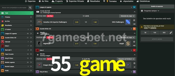 A aposta 55 game oferece aos jogadores a experiência mais conveniente de apostas em eSports!
